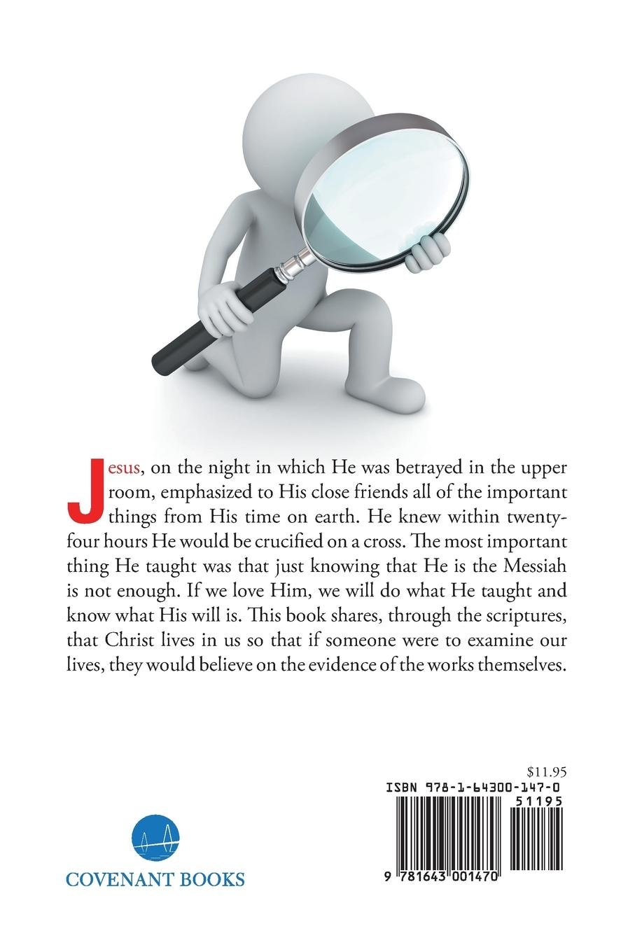 Jesus, on the night in which He was betrayed in the upper room, emphasized to His close friends all of the important things from His time on earth. He knew within twenty-four hours He would be crucified on a cross. The most important thing He taught was that just knowing that He is the Messiah is not enough. If we love Him, we will do what He taught and know what His will is. This book shares, through the scriptures, that Christ lives in us so that if someone were to examine our lives, they would believe on the evidence of the works themselves.
